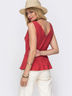 Льняной топ без рукавов с глубоким V-образным вырезом горловины спереди и сзади. Модель отрезная по талии с расклешенной баской. Застегивается на крупные пуговицы по полочке.
