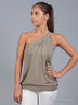Замечательный топ, выполненный из качественного материала однотонной расцветки. Изделие на широкой бретели через плечо. Прекрасная базовая вещь для модного летнего гардероба.