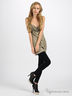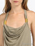 Трикотажный топ свободного покроя из нежного. Приятного на ощупь материала. Оригинальные бретельки декорированы металлическими пружинами. Двойная полочка с напуском. Низ изделия посажен на широкий манжет.