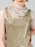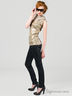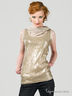 Стильный топ, полностью украшенный спереди пайетками. Топ без рукавов с объемным воротником-стойкой, выполненным из сетчатого материала.
