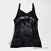 Топ на бретелях с рисунком спереди и вышивкой металлизированной нитью. Бретели, линия верха, проймы и спинка декорированы резинкой с кружевом, на спинке разрез.