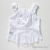 Милый топ белого цвета с жатой тканью на горловине и плечиках. Застегивается на пуговицы.