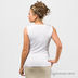 Стильный топ без рукавов с ниспадающей горловиной. Топ украшен жемчужными бусинами и цепочками.