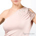 Стильный топ через одно плечо. Декорированное бусинами. На плече топ имеет декоративный вырез, украшенный цепями и стразами. Низ издели "посажен" на резинку.