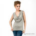 Стильный топ без рукавов с ниспадающей горловиной. Топ украшен жемчужными бусинами и чепочками.