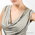Стильный топ без рукавов с ниспадающей горловиной. Топ украшен жемчужными бусинами и чепочками.