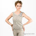 Стильный топ из ажурного трикотажа с V-образным вырезом горловины и оригинальными рукавами. Спереди топ украшен цветами.