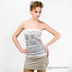 Стильный топ без бретелей. Спереди оригинальный принт, декорированный стразами.