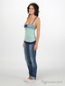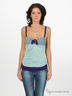 Топ из мягкого вискозного трикотажа. Бретели - ленточки, на спинке пристегиваются на пуговицу. Отрезной лиф. Приталенный силуэт. Декоративные сборки и бант на передней части изделия.