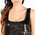 Стильный топ свободного кроя с разрезами по бокам выполнен из атласного материала и расшит паетками.