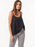 Топ свободного силуэта из легкой струящейся ткани на подкладке. Детали: бретели-спагетти, застежка на пуговицу по спинке.