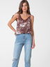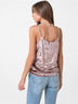 Топ свободного силуэта из трикотажного бархата на подкладке. Детали: V-образный вырез горловины переда, тонкие бретели без регулировки. Без застежки.