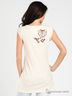 Детали: глубокий вырез горловины, короткие рукава крылышко, оригинальный принт на полочке декорирован бусами, на спинке так принт.