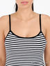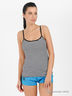 Трикотажный топ выполнен из гладкого хлопка, округлый вырез горловины, тонкие бретели. Отличный вариант на каждый день.