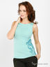 Модный топ из тонкого, эластичного хлопкового трикотажа. Модель приталенного силуэта. Вырез горловины - лодочка. На полочке крупный печатный рисунок.