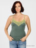 Детали: тонкие лямки и округлый вырез декорированы кружевом, аппликация на полочке