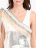 Детали: округлый вырез горловины, лямки, пришиты верхний сетчатый слой с тесьмой и принтом