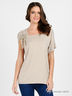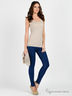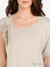 Детали: округлый вырез горловины, полочка присборена на брошь в виде банта со стразами