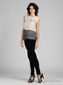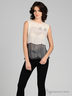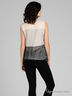 Топ-баллон без рукавов. Выполнен из шифона трех цветов. Округлый вырез горловины на спинке застегивается на пуговицу. Полочка декорирована рюшами. Низ изделия посажен на резинку.