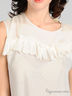 Топ-баллон без рукавов. Выполнен из шифона двух цветов. Округлый вырез горловины на спинке застегивается на пуговицу. Полочка декорирована нашивками в виде цветочкомв из шифоновой ткани. Низ изделия посажен на резинку.