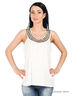 Детали: круглый вырез, без рукавов, сзади застегивается на пуговицы, спереди украшен металлическими декоративными элементами