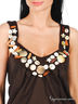 Детали: v-образный вырез, без рукавов, сзади широкая вставка из мелких резиночек, топ украшен перламутром и ракушками
