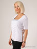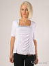Детали: вырез горловины прямоугольный, длинные рукава 1/2, стильная вставка из отделочной ткани со сборкой