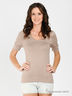 Детали: округлый вырез горловины присборен в мелкие складки, короткий прямой рукав