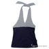 Трикотажный топ свободного кроя на широких бретельках в узкую сине-белую полоску. На груди украшен тесьмой в виде банта. Идеален в сочетании с зауженными поясными изделиями.