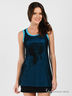 Детали: круглый вырез; на полочке оригинальная аппликация и слой сетчатой ткани черного цвета