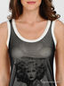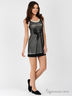 Детали: круглый вырез; на полочке оригинальная аппликация и слой сетчатой ткани черного цвета