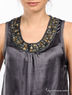 Детали: круглая горловина декорирована бисерной вышивкой, проймы окантованы шифоном в тон