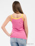 Отличный топ облегающего комфортного кроя, на тонких бретелях и с округлым вырезом горловины. Изделие украшено рисунком в горошек.