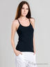 Эластичная хлопковая мягкая ткань с добавлением эластана. Тонкие бретели без регуляции длины, перекрещиваются на спине. В нижней части полочки принт в виде логотипа марки.