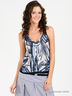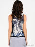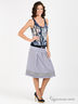 Детали: округлый вырез горловины, лямки, скрытая застежка на молнию в левом боковом шве, имитация застежки на пуговицы на полочке, сборки, принты