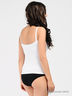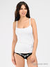 Детали: окантовка пройм плавно переходит в тонкие бретели; на полочке оригинальная аппликация