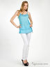 Женский топ из нежного трикотажа. Тонкие бретельки. Верх лифа оформлен кружевной вставкой. Заниженная талия, подчеркнутая кулиской.