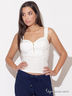 Привлекательный топ подчеркнет Вашу женственную натуру. Модель на широких бретелях с фигурным вырезом горловины. Спереди короткая застежка на молнию. Модель выполнена из высококачественного материала приятной расцветки. Отличный вариант для повседневного использования.