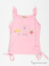 Прелестный топ на тонких бретелях из трикотажного хлопка. Изделие украшено очаровательными оборками, карманом - кенгуру и рисунком. Прекрасное дополнение детского гардероба.