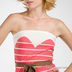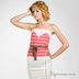 Трикотажный топ без бретелек. Верх изделия посажен на резинку. На уровне талии коричневый трикотажный поясок.