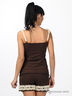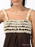 Трикотажный топ прямого покроя. Тонкие лямки. Декорирован ажурными рюшами.