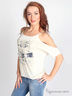 Детали: оригинальный крой верхней части изделия; тонкие бретели; короткий рукав с прорезями на плечах; на полочке оригинальный рисунок