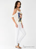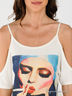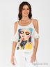 Детали: круглый вырез на тонких бретельках, короткие оригинальные рукава, на полочке принт, ассиметричный крой