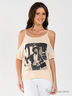 Детали: круглый вырез на тонких бретельках, короткие оригинальные рукава, на полочке принт, ассиметричный крой
