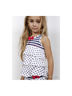 Нежный топ без рукавов с красивыми воланами. Контрастная отделка по краям. Бантик и декоративные пуговицы спереди, логотип на груди. Размер по росту в см.