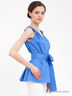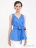 Элегантный топ из гладкой хлопковой ткани. V-образный вырез горловины с запахом. Талия подчеркивается широким поясом с бантом. Отличный вариант для создания стильного образа.