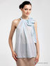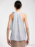 Стильный топ прямого кроя с оригинальным рисунком. Вырез горловины дополнен кулиской, в которую продета лента на завязке. Отличный вариант для повседневной носки.