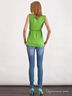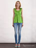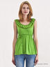 Изящный топ свободного кроя с отделкой кружевом по горловине. Отрезная линия под грудью. Застежка на маленькую пуговку сзади.