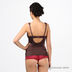 Топ из эластичного искристого атласа с чашечками. Формованные бесшовные чашечки на косточках. Широкие бретельки из сетки регулируются по длине. Застегивается сзади на крючки. Декорирован вышивкой.