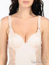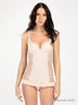 Топ из тонкой сеточки с вышивкой, вставки из эластичной ткани. Формованные гладкие чашечки у бюста. Легкий эффект push-up благодаря поролоновому уплотнителю. Бретельки из тонкой сеточки декорированы бантиками, регулируются по длине. Бюст застегивается на спине на 2 крючка в 3 ряда.